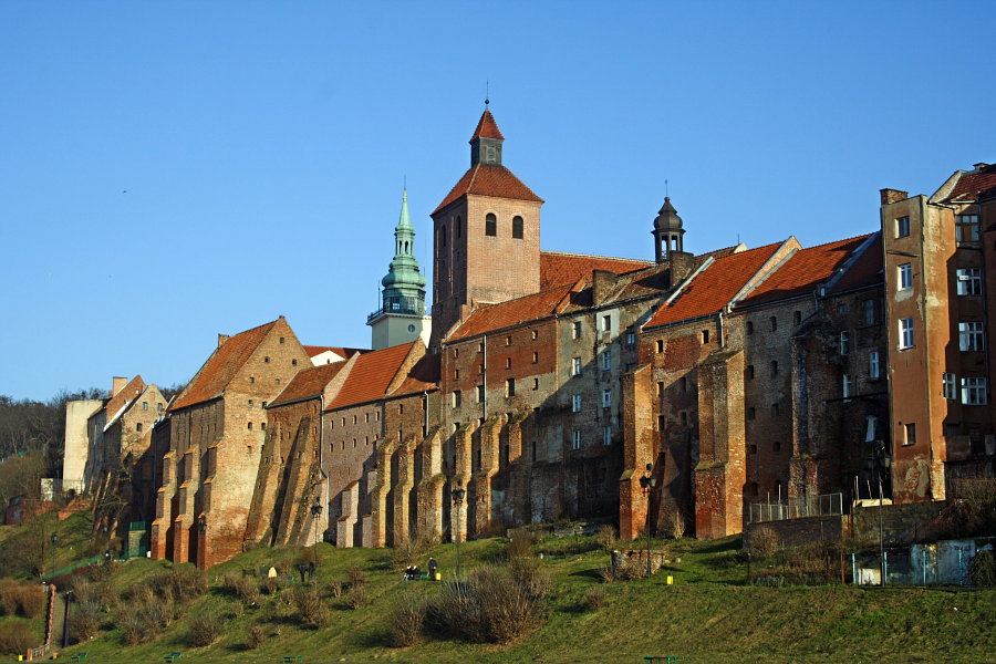 Spichlerze w Grudziądzu zaczęto budować w XIV wieku, kiedy miasto rozwijało się jako ważny ośrodek nadwiślańskiego handlu. Wisła była wtedy główną arterią transportową, a Grudziądz pełnił rolę wielkiego magazynu – szczególnie dla zboża i innych towarów sypkich spływających z rozległego zaplecza. Lokowanie spichlerzy na skarpie miało głęboki sens: z jednej strony chroniło przed zalaniem, z drugiej umożliwiało wygodne załadunki i rozładunki dzięki różnicy poziomów. W dokumentach pojawiają się wzmianki o spichlerzach już w XIV wieku, a z czasem ich liczba rosła, aż powstał zwarty zespół obejmujący dziś kilkadziesiąt budynków.